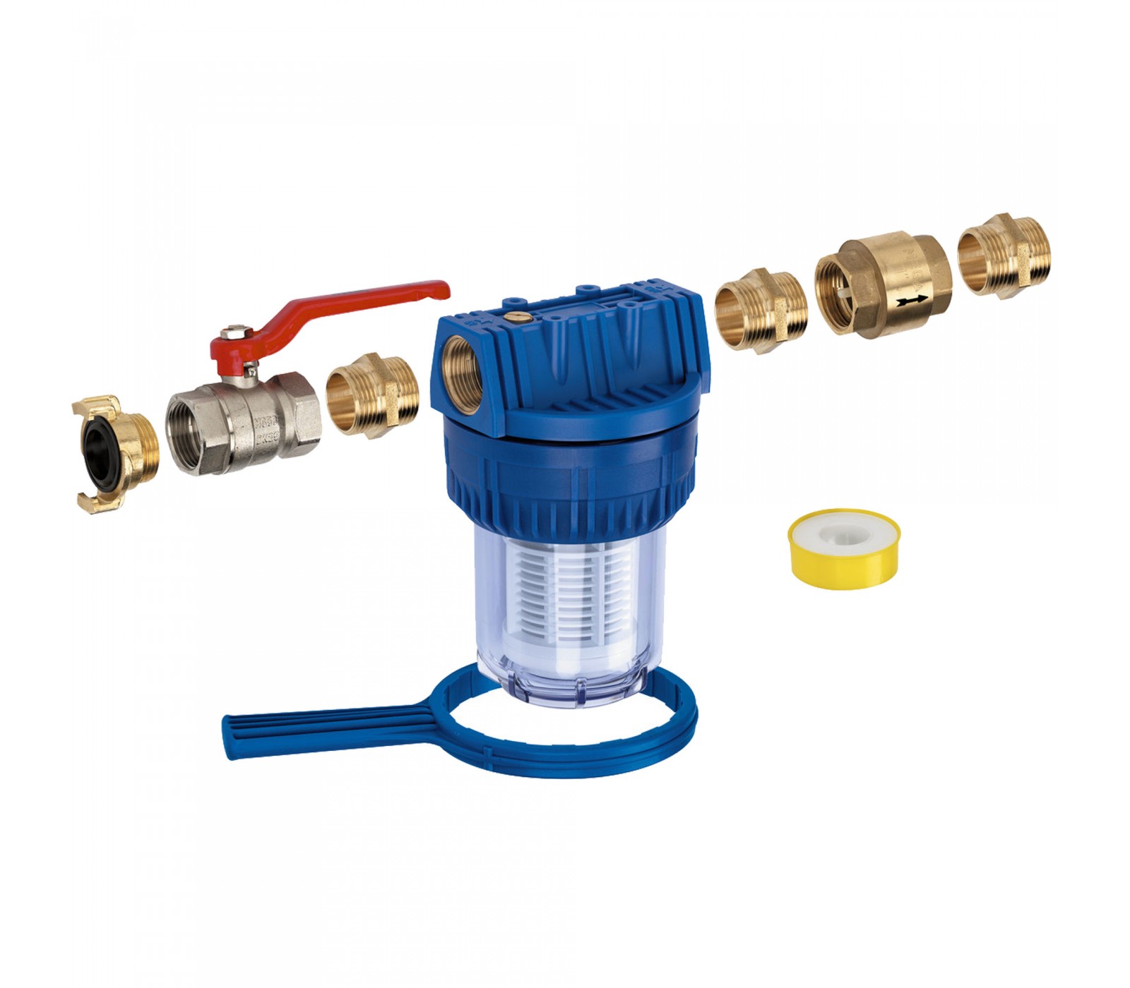 - Filter voor tuinpompen; 1 binnendraad Wasbaar filterinzetstuk Messing dubbele nippel; Messing vernikkelde kogelkraan; Messing snelkoppeling, 12 m;