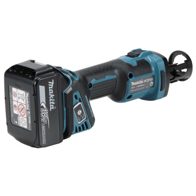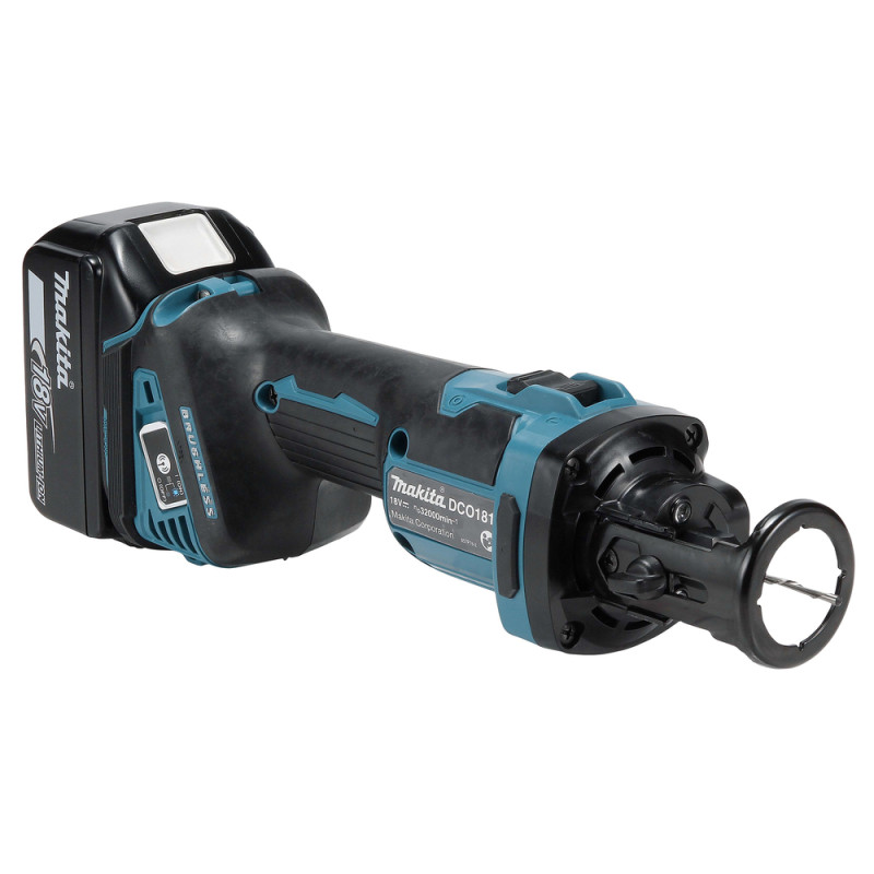 De Makita DCO181Z 18V gipsplaatfrees is compact, licht (1,4–1,7 kg) en geschikt voor dagelijks gebruik. De borstelloze motor haalt 32.000 tpm voor snelle, precieze sneden. Soft-start geeft controle bij het starten. XPT-bescherming houdt stof en water buiten. AWS-compatibel (chip apart verkrijgbaar) voor draadloze stofafzuiging. Perfect voor elektriciens en installateurs – bijvoorbeeld voor nette gaten voor stopcontacten of verlichting in gipsplaten.