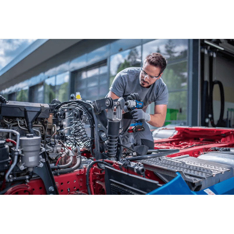 De Bosch GDS 18V-450 HC accu slagschroevendraaier levert 450 Nm aandraaimoment en 800 Nm losdraaimoment. Twee vooraf ingestelde modi voor metalen bouten/moeren en houtschroeven beschermen tegen beschadiging, instelbaar via Bosch Toolbox-app. Drie snelheids-/koppelinstellingen voor flexibiliteit. Licht (1,6 kg), 1/2" vierkante aansluiting, LED – ideaal voor auto-, metaal-, industrie- en raamwerkwerk.