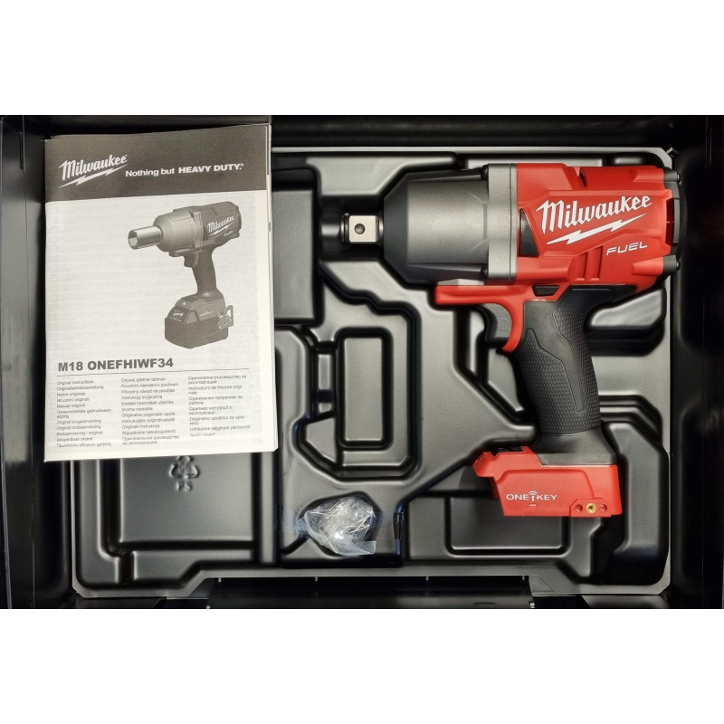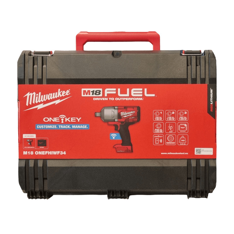 Milwaukee M18 ONEFHIWF34-0X 18 V akumuliatorinis smūginis veržliasukis su 2034 Nm sukimo momentu yra galingas įrankis, skirtas sudėtingiems profesionaliems darbams.