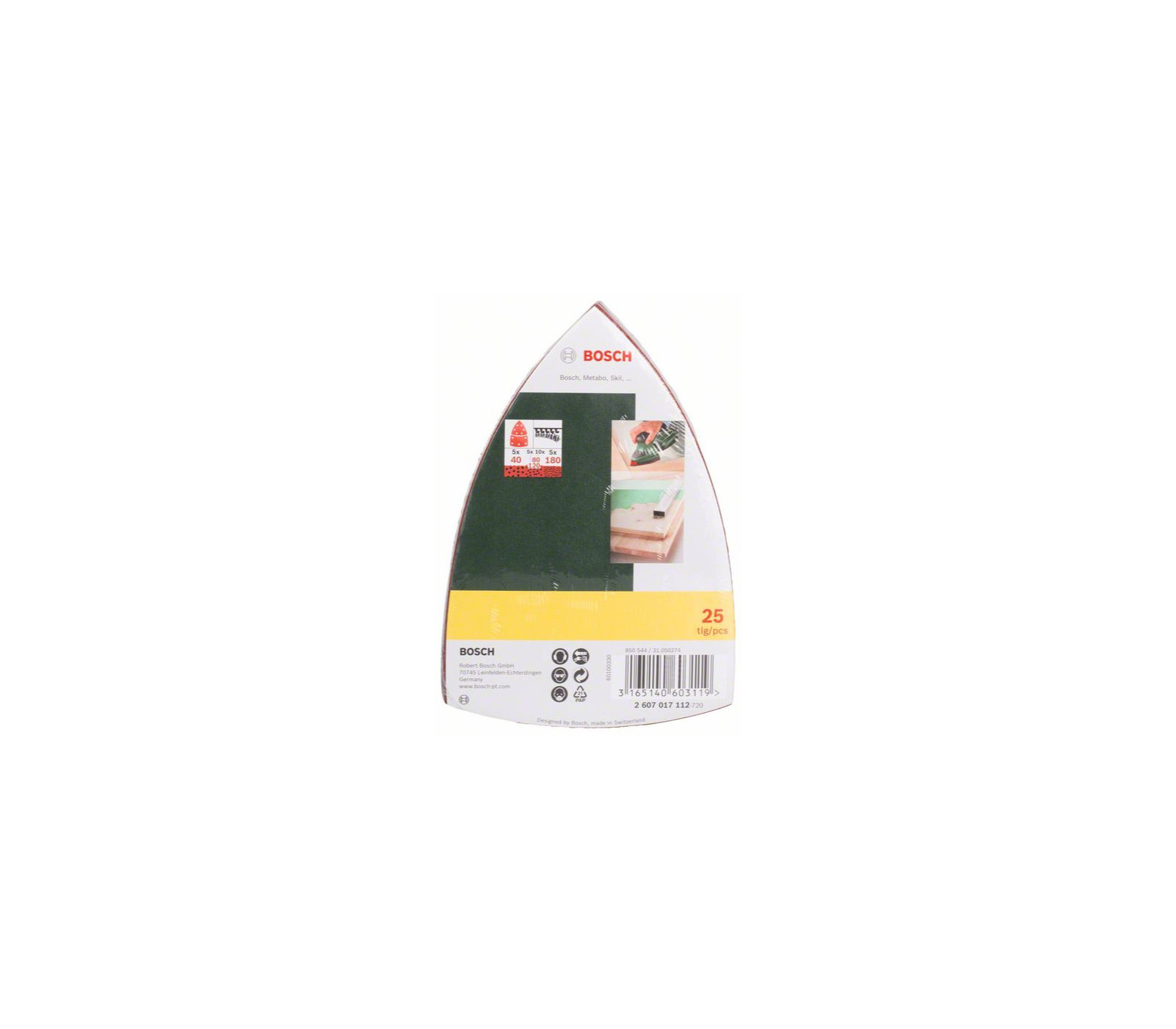 Bosch šlifavimo popierių rinkinys, 102 x 62 mm, 40,80,120,180 grūdėtumas, 25 vnt.