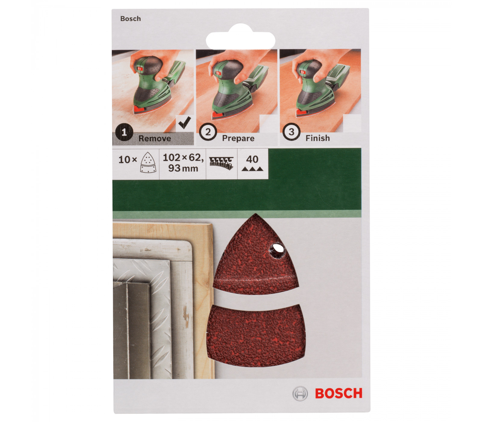 Bosch šlifavimo popierių rinkinys, 102 x 62 x 93 mm, 40 grūdėtumas, 10 vnt.