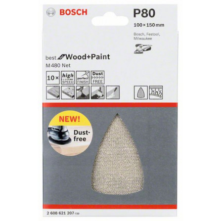 Bosch šlifavimo popierius M480 Net, 100 x 150 mm, 80 grūdėtumas, 10 vnt.