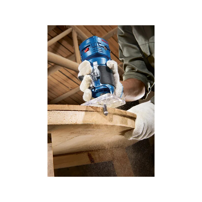 Compact en krachtig – de Bosch GLF 55-6 Professional heeft een 550 W motor met 33.000 tpm voor snel en schoon kantenfrezen. Perfect voor laminaat en fineer. Licht (1,4 kg) en eenvoudig met één hand te bedienen dankzij de transparante voet.
