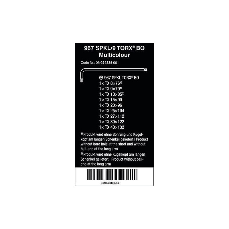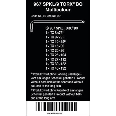 Inbussleutelset Wera 5024335001 (TX8-TX40, 9-delig)