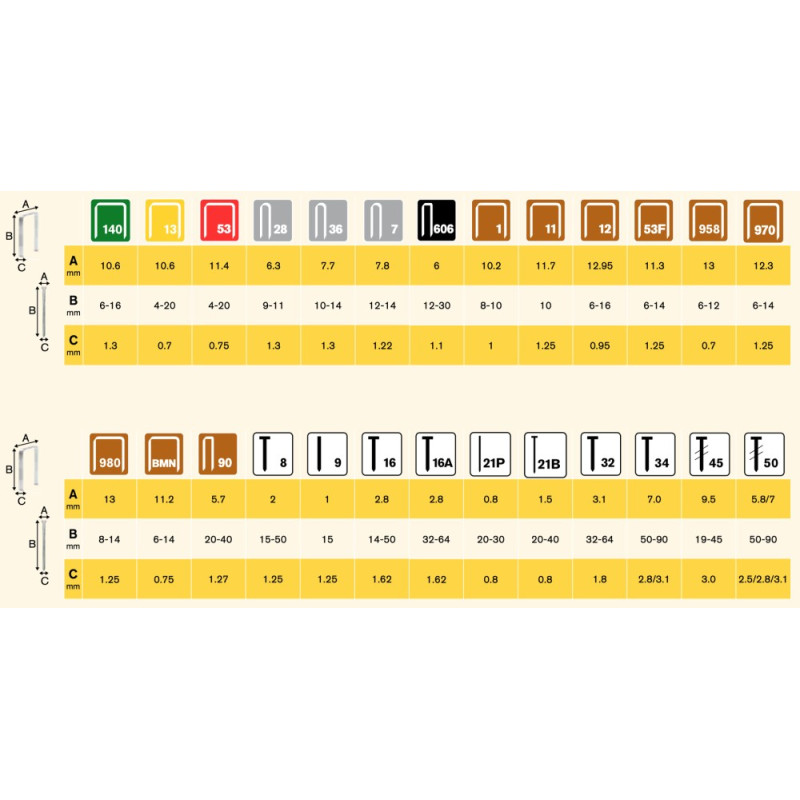 - 53 type brede spijkers voor veelzijdig gebruik.